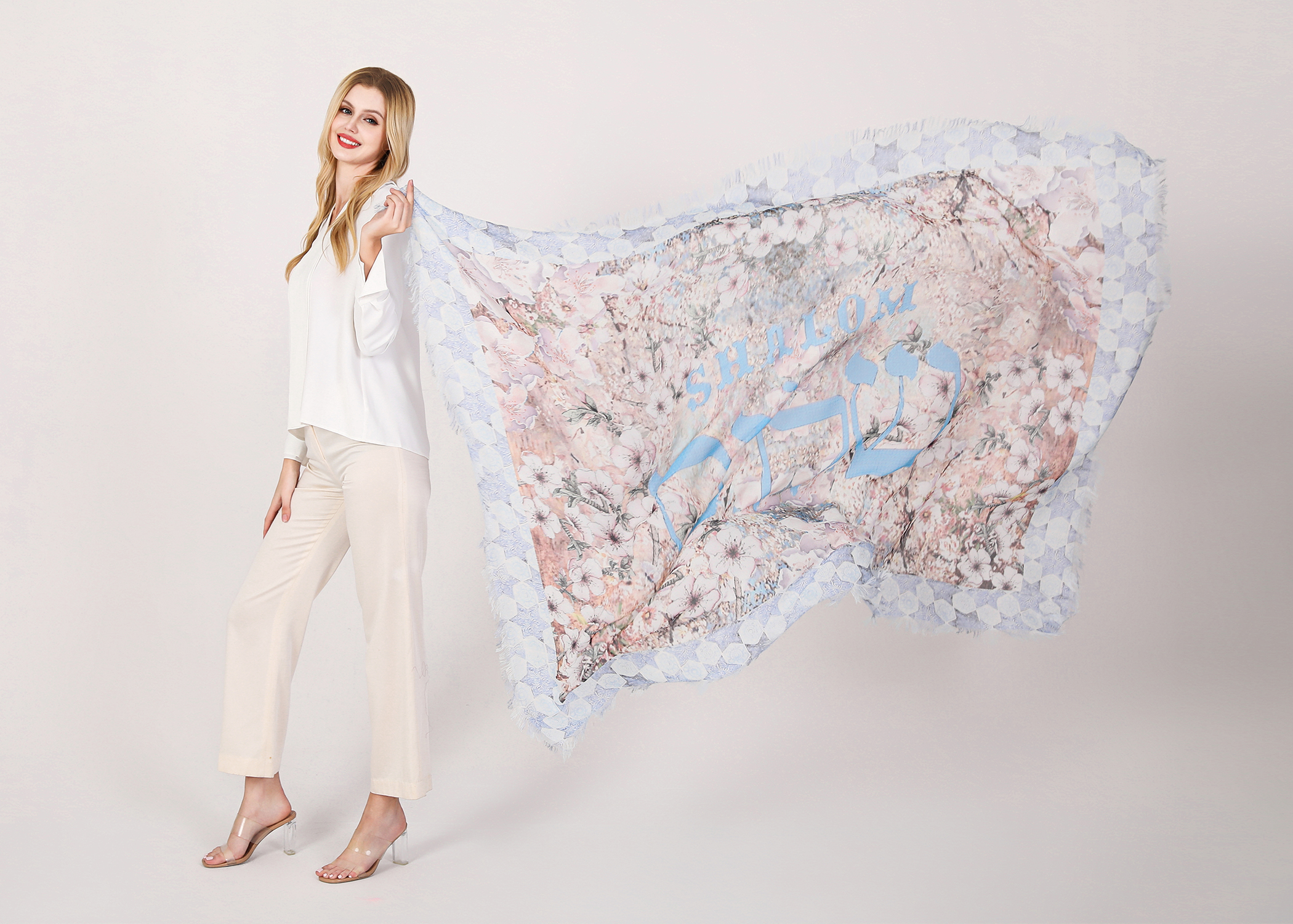 שלום in Hebrew, SHALOM in English is on this luxury collectors shawl